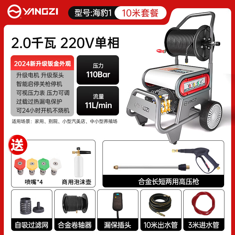 揚子海豹洗車機洗車高壓水槍高壓清洗機大功率工業洗車水槍220v洗車店養殖場洗車泵,商用級銅制感應電機澎湃動力三重防護,2000W-5500W商用風冷感應電機,智能調壓閥輕松掌握精準水壓。
