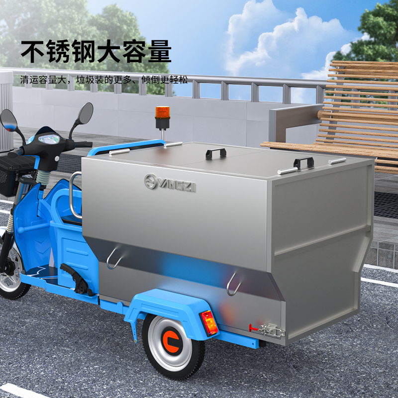 揚子電動垃圾搬運車省時省力,安全環保,650L不銹鋼大容量垃圾箱,清運容量達裝得多,倒得更輕松。